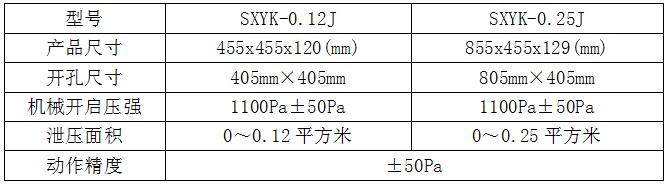 开孔尺寸(300*300~725*725),泄压面积(0.05㎡~0.45㎡)范围内可实现非标订制。